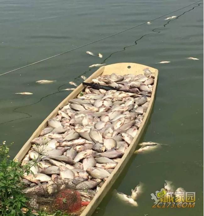 村民都一直忙于打撈魚塘里的死魚,用來打撈死魚的小船都裝滿了。