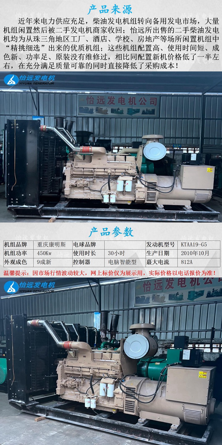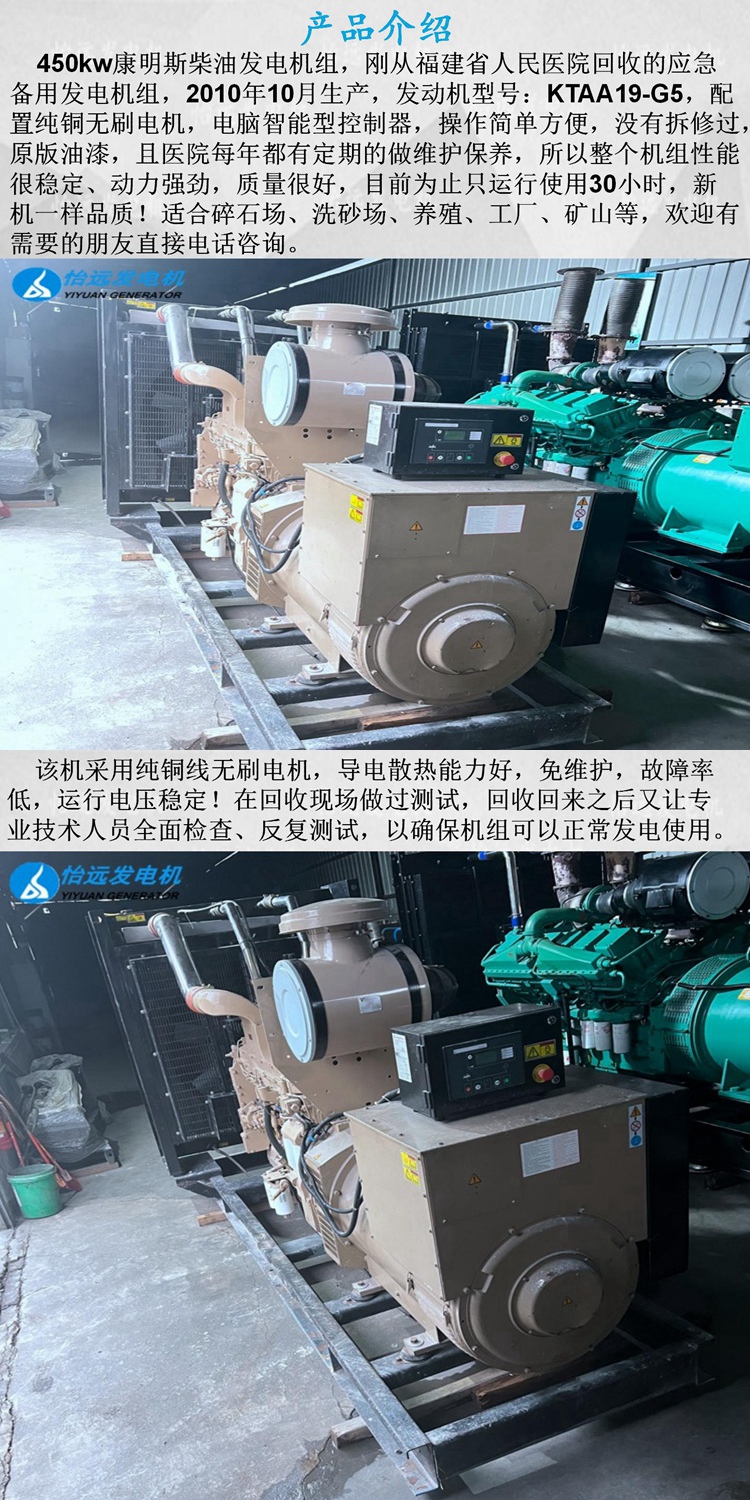 出售一臺二手450kw康明斯柴油發(fā)電機(jī)組,剛從福建省人民醫(yī)的院回收回來的應(yīng)急備用發(fā)電機(jī)組,2010年10月生產(chǎn),發(fā)動機(jī)型號:KTAA19-G5,配置純銅無刷電機(jī),電腦智能型控制器,操作簡單方便,沒有拆修過,原版油漆,且醫(yī)院每年都有定期的做維護(hù)保養(yǎng),所以整個機(jī)組性能很穩(wěn)定、動力強(qiáng)勁,質(zhì)量很好,目前為止只運(yùn)行使用30小時,新機(jī)一樣品質(zhì)!適合碎石場、洗砂場、養(yǎng)殖、工廠、礦山等,歡迎有需要的朋友直接電話咨詢:13751213841