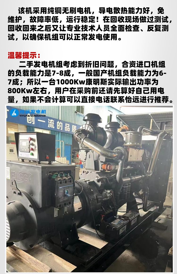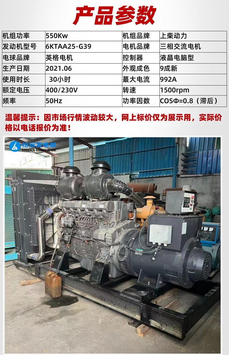 出售一臺9成新二手550千瓦上柴動力發(fā)電機組,2021年6月出廠,發(fā)動機型號為:6KTAA25-G39,,配套品牌無刷全銅英格電機,電腦智能型控制器。國三排放,學(xué)校里的應(yīng)急備用電源,機器原版原漆、無維修過、目前為止才發(fā)電使用30小時,國產(chǎn)大品牌,機器測試一切正常,歡迎有需要的客戶聯(lián)系洽談:13751213841